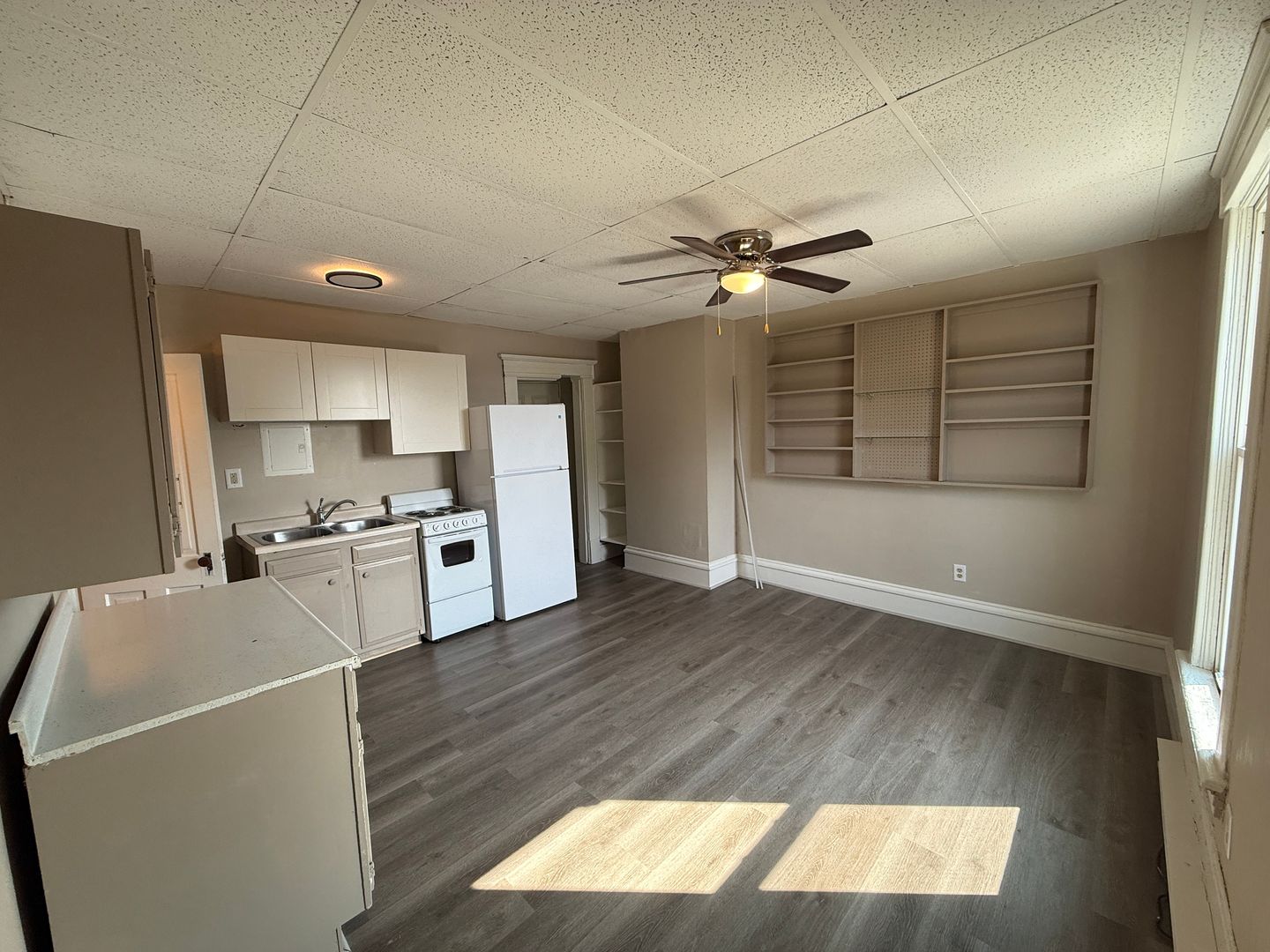 Looking for a space that’s simple, affordable, and close to everything you need? This charming studio checks all the boxes! The open layout gives you a bright and airy feel with large windows that let in tons of natural light. The kitchen comes with a fridge and stove, perfect for whipping up your favorite meals, and the built-in shelving adds character while giving you extra storage space. You’ll also love the spacious walk-in closet – plenty of room for clothes, shoes, and more.